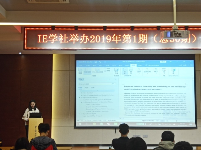 近日,矿业学院工业工程系IE学社在矿业楼A604举办了2019年度第一期学术交流会。李玉鹏老师出席了此次交流会,六位同学分别进行了汇报。