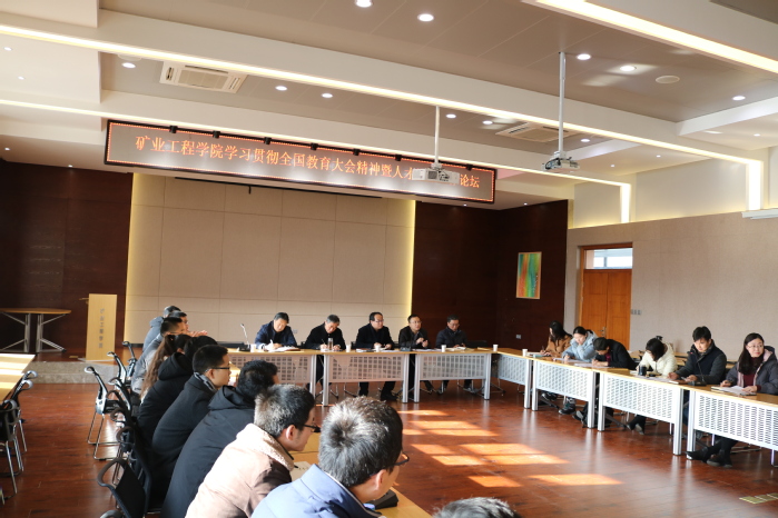 12月14日上午,为学习贯彻落实全国教育大会精神,矿业学院在矿业楼A604报告厅召开“学习全国教育大会精神专题研讨会暨学生培养工作创新论坛”。学院全体领导班子、院关工委常务副主任姬长生、各教工党支部书记、系所负责人、科室主任、全体班主任、辅导员参加了论坛,论坛由院党委副书记畅军亮主持。
