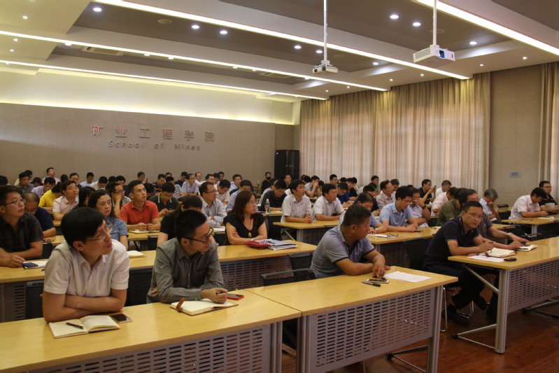 在矿业楼A604报告厅召开全体教职工会议,传达学校新学期战略研讨会、教师干部大会、教师节表彰大会等会议精神,总结2018年上半年工作、部署下半年重点工作。大会由学院党委书记陈新忠主持。