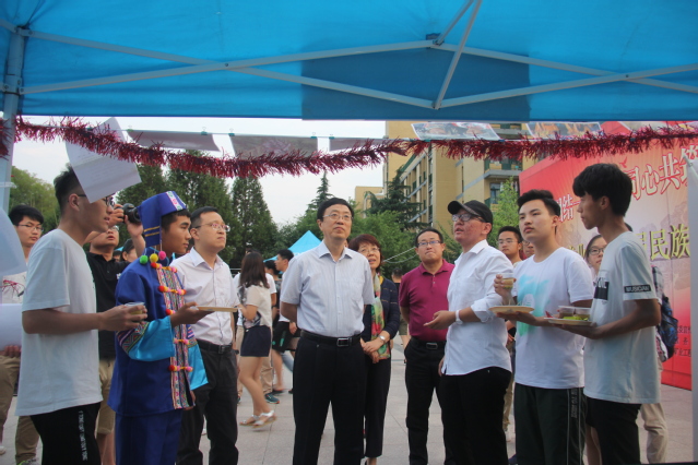 青春广场两边举办了民族文化节系列活动之各民族美食风俗展。共分12个展台分别向同学们展现了各民族风情各异的舞蹈、美食、语言、文字等方面的民族文化。校党委副书记曹德欣等依次参观了每个展台,与各民族学生亲切交谈,详细了解了各民族的文化历史、风俗习惯,在品尝不同民族特色美食的同时,学习了不同民族的独特文字、了解了中华民族大家庭各具特色的璀璨文化。曹德欣副书记对活动的成功举办给予了高度赞扬。