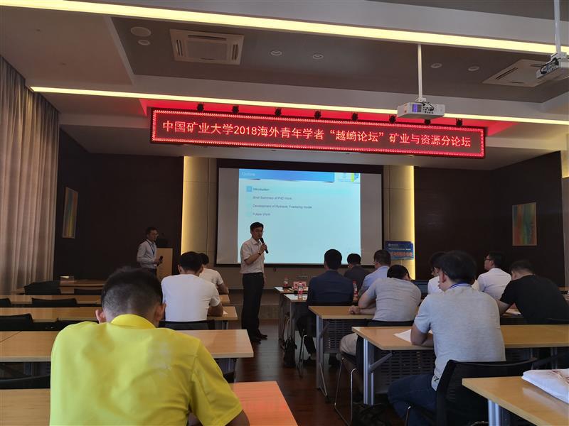 2018海外青年学者“越崎论坛”矿业与资源分论坛在矿业学院A604举行。来自美国、英国、澳大利亚等海外主要留学国家知名大学的四位青年学者受邀介绍了各自领域的相关研究工作,柏建彪教授、李桂臣教授、杨永良教授、冯小军博士、钱德雨博士,李许伟博士等教师及部分研究生参加了本次学术报告会。