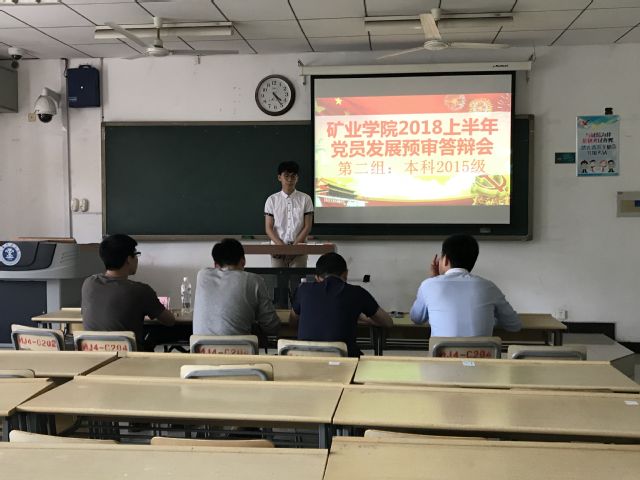 5月14日,矿业学院党委在博学4楼举行了2018上半年党员发展(转正)预审答辩会。答辩评委由学院党委书记陈新忠、副书记畅军亮、组织员潘晓龙老师以及全体专兼职辅导员、党员代表组成。