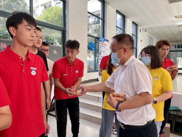 随后,院领导为新生分发了精心准备的月饼,在场的同学对学院的慰问表示感谢。同时,学院各班班主任分别组织开展了形式多样的中秋节祝福活动,为学生送上了月饼、水果等。