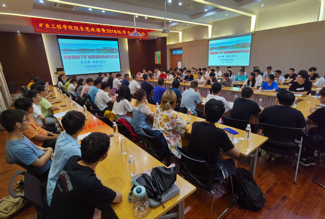 张吉雄院长讲课的主题是“双碳目标下矿业面临的挑战与机遇”。他为同学们梳理了学院办学112年来的发展历程,详细介绍了学院的科研与教学平台、一流师资队伍、内涵式发展规划,讲解了双碳目标下矿业发展的挑战与机遇,分享了自己从矿业学子成为煤海深处教授的奋斗历程。
