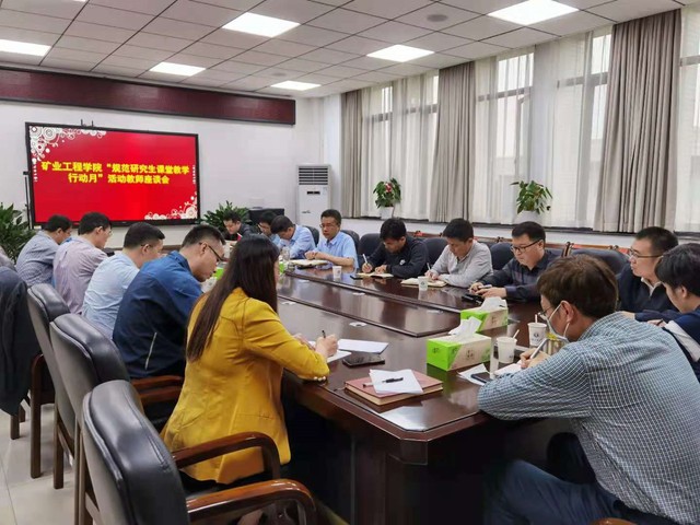 5月14日下午,矿业学院在学院楼A509会议室召开“规范研究生课堂教学行动月”教师座谈会。学院教学督导、各系(所)分管研究生工作负责人、研究生导师代表和学生培养办公室相关工作人员参加了座谈会。会议由万志军副院长主持。