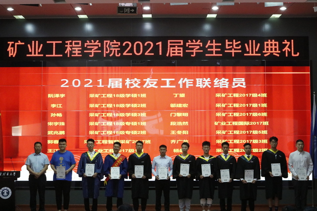 毕业典礼上,学院对学院获得校优秀毕业生、基层就业先进个人进行了表彰,为首届智能采矿班、矿业国际班颁发了荣誉证书,进行了矿业学院校友联络员聘任,为每一位毕业生颁赠校友徽章及纪念礼物,为民族预科班学生代表颁发了结业证书。