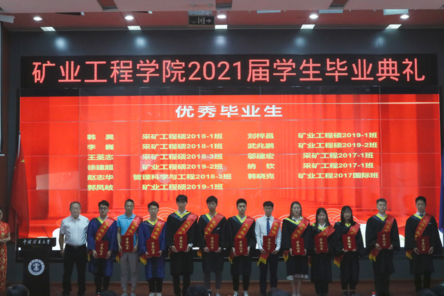 教师代表、矿业国际班2017班主任李桂臣教授,研究生代表郝定溢、本科生代表王嘉伟先后发言。本科2017级班主任通过视频的方式也为同学们送上了真挚的祝福。李桂臣教授祝福各位同学顺利完成了大学生活,人生求学旅途暂时画上了圆满的句号。他还对同学们提出几点希望。要不忘青春梦想,牢记拼搏使命。要不断增强自信,勇敢面对各种磨练。要做到以诚待人,努力学会宽容。要牢记师长教诲,学会感恩一切。郝定溢博士分享了在学院六年求学生涯的点点滴滴,回忆了学院对其的培养,最后他呼吁同学们在毕业之后要常怀感恩之心,铭记学院“三永远”采矿精神,在工作岗位上努力奋斗,为祖国事业发展做出矿业人的贡献。王嘉伟同学深情回顾求学之路,发出为矿业正名的号召,并分享了成为矿业人以来的感悟,深刻诠释了对学院的热爱和感激之情。