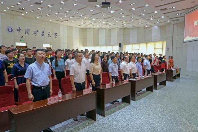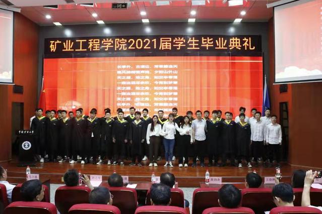 典礼在庄严的国歌中拉开序幕。张吉雄院长向顺利完成学业的2021届全体毕业生表示衷心的祝贺。他说,从初入校园到今天的顺利毕业,数年匆匆而过,你们用努力、拼搏书写着在矿大期间的人生答卷,各位同学以实际行动和优异成绩塑造了更好的自己,为未来发展奠定了坚实的根基。张吉雄院长还给同学们送上了温馨的祝福,并提出殷切的希望。一是希望同学们坚守理想,不忘初心,永守本真。坚守理想,才能走得更远。不忘初心,才能走得稳健。只有这样,方能穿破迷雾、克服阻碍,以努力与拼搏谱就青春的奋斗华章。二是希望同学们爱国报国,勇于担当,甘于奉献。他以“井下教授”为例鼓励大家,要努力奋斗、勇于担当,做一个热爱祖国、甘于奉献的奋斗者,切实肩负起时代重任,在真刀真枪的实干中成就一番事业。三是希望同学们坚持好学力行,未来投身实践,尽快成长成才。他表示,在复杂的国际形势下,我们必须瞄准“卡脖子”的关键核心技术,用科学赢得发展的先机;要牢固树立终身学习的理念,保持好学力行的优良传统,在终身学习中追求卓越,止于至善;同学们走向新的阶段之后,要认真踏实地做好每一件工作,圆满完成每一项任务,从实践中锤炼过硬本领,以真才实学服务于人民、贡献于国家。