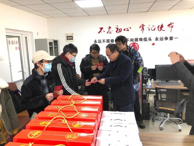 高世杰副书记、王晓琳副院长对留校同学们学习、安全进行了嘱咐。同学们也表示自己的辅导员、班主任、导师都非常关心自己的留校情况,并表示一定牢记各位领导老师的嘱托,遵守寒假留校规定,争取度过一个充实的假期,同时也向各位来慰问的老师送上了新年祝福。最后学院给各位留校学生送上了新春红包和慰问物资。