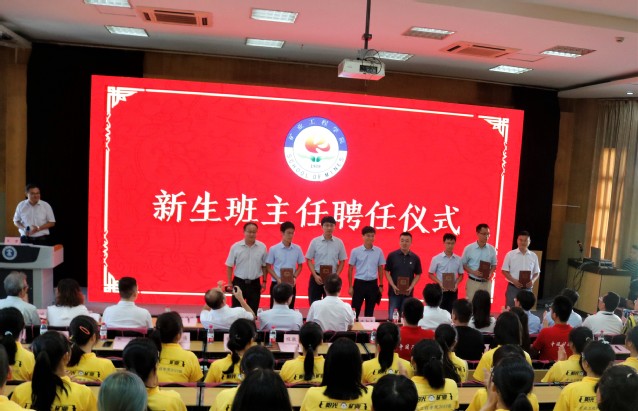 学院党委书记陈新忠为各新生班主任颁发聘书。