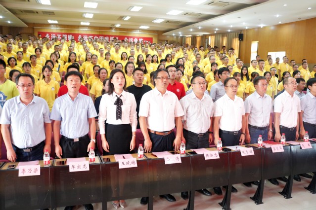 院领导陈新忠、张吉雄、尚涛、李学华、王晓琳、范军,学院各平台、系所、科室负责人,2019级各班班主任、学院全体专兼职辅导员,2019级全体本科生、预科生共同参加了典礼,典礼由学院党政办主任王君主持。
