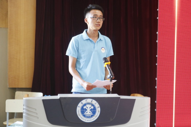 学硕2019-1班郭丰作为新生代表进行了发言,他用自己在心中怀揣的一份“采矿梦”,通过自己在西安科技大学四年的努力,实现了“矿大梦”。他号召同学们要努力做到:明确目标、学会学习,博采众长、厚积薄发,内强素质、外塑形象,用“欲上青天揽明月”的抱负和 “白日放歌须纵酒”的豪情,续写矿业学院研究生教育的卓越篇章。