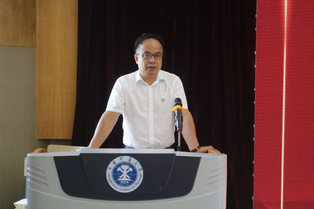 院长张吉雄代表学院欢迎各位新同学加入矿业学院,感谢各位同学选择矿业学院。张院长向同学们通报了2019年矿业学院研究生招收录取情况,并向同学们做了学院介绍。他表示,今年矿大校史上特殊的一年,学校迎来了110周年华诞,召开了第十四次党代会,作为在矿大开启创建能源资源特色世界一流大学的新征程上入校的研究生,同学们是无比幸运的,他希望同学们一是要诚实做人,在求学和科研的路上,能抵得住诱惑留得心底的澄澈通透;二是要踏实做事,用“脚踏实地、日积月累”的执着坚守,点亮你人生的烛火;三是要勇于创新,以积极开放的心态去探索新领域,在多学科交叉融合中尝试解决新问题、发明新方法,在互动交流中丰富认知体系,激发创新活力;四是要勤于实践,每位同学既要能开展“顶天”的理论分析和基础研究,也能积极投身厂矿工业一线,让科研能“立地”生根,造福行业。