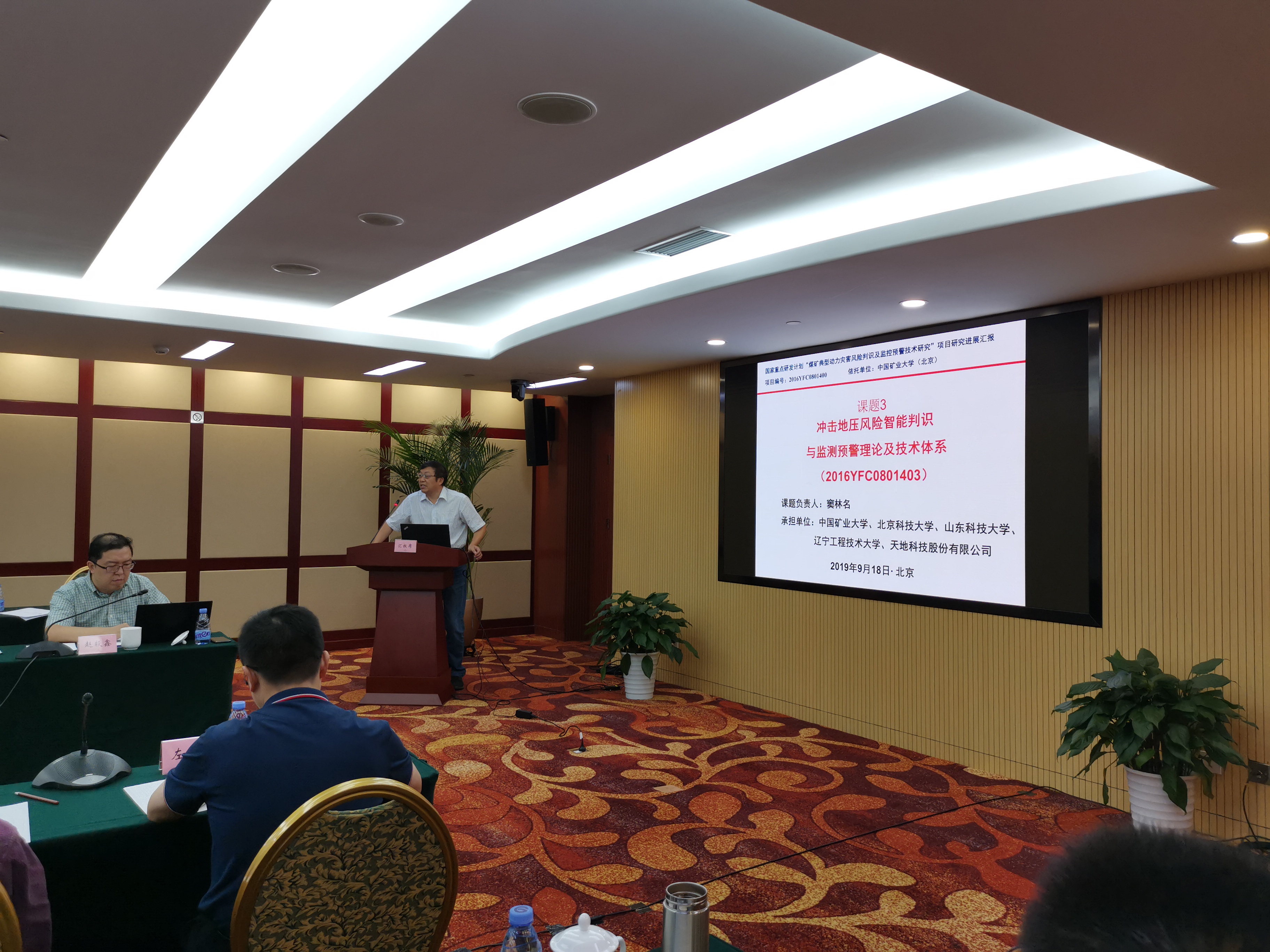 副校长周福宝教授、武汉大学刘泉声教授、安徽理工大学薛生教授、中国农业大学张树彦处长组成,彭苏萍院士担任专家组组长。项目负责人袁亮院士、课题三负责人窦林名教授及其他课题负责人、课题研究骨干等100余人参加了本次会议。