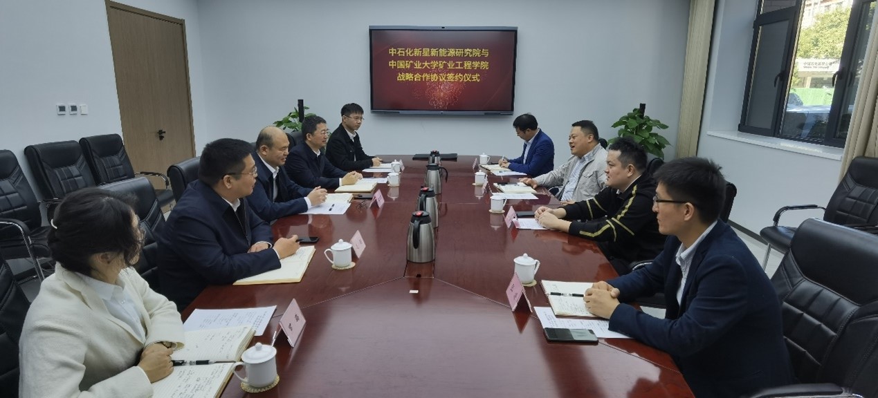 10月20日,学院党委书记闵涛一行赴中石化新星(北京)新能源研究院有限公司开展合作交流以及合作协议签约仪式。新能源科学与工程系主任马丹,系副主任严红、张源和中石化新星(北京)新能源研究院有限公司党委书记梁海军、院长杜利、副院长毛翔、综合管理部经理唐果、地热实验室主任罗璐等参加交流活动。