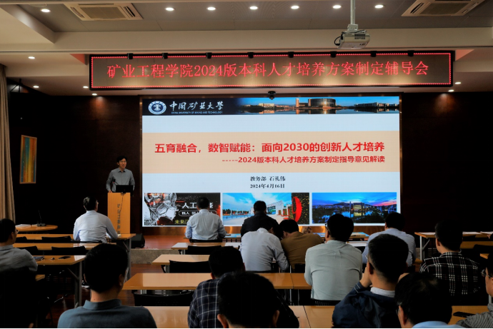 的办学特色与专业优势。在培养学生的过程中,要注重激发学生的创新精神和实践能力,以造就具有扎实基础知识、卓越实践能力、高尚职业素养的一流矿业工程人才。石副部长进一步指出,制定培养方案时要坚持实事求是、求真务实的原则,根据学院学科的具体情况和特点,科学合理地设置课程和培养环节,加强专业内涵建设,确保教育教学质量的持续提升。他鼓励学院教师积极参与培养方案的制定工作,充分发挥自身的专业优势和创新精神,努力打造具有中国特色、矿大品格的一流本科教育体系。