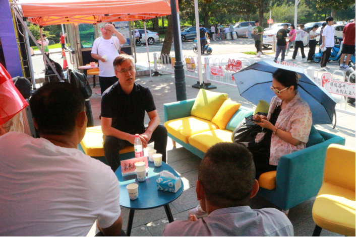 与新生家长交流