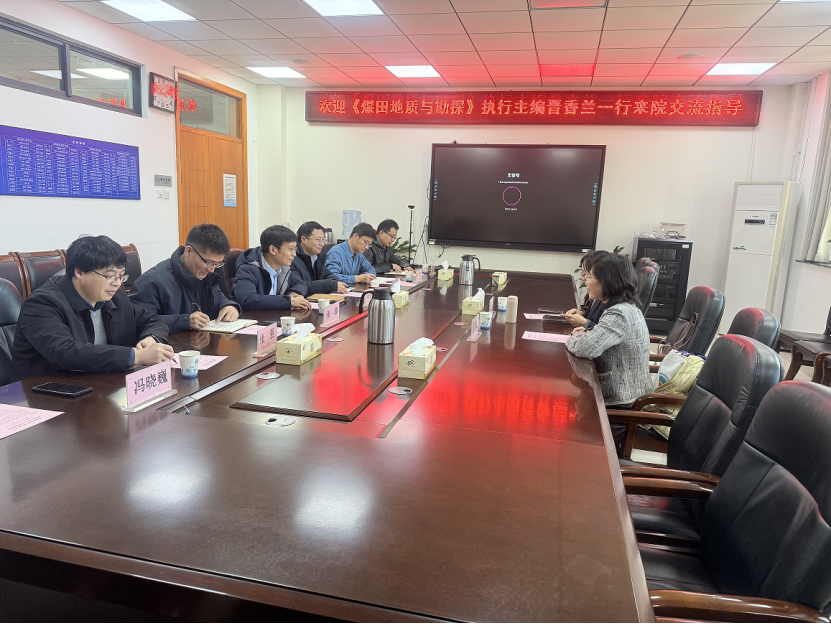 副院长姚强岭主持,新能源科学与工程系、智能采矿系相关负责教师参与了交流。姚强岭首先对晋香兰一行来访表示热烈欢迎,简要介绍了学院办学的基本情况,分析了新能源科学与工程专业和智能采矿专业的发展过程、研究方向和与该期刊栏目未来的结合点,并着重强调期刊发展与学科发展是相互促进、同向而行的关系;晋香兰介绍了《煤田地质与勘探》期刊办刊理念、发展过程、期刊选题、专栏设置、期刊特色与已取得的荣誉、与学院研究方向契合点等。双方围绕期刊布局方向、栏目特色、稿件标准、期刊审稿和发展、矿业工程学科与期刊结合点等内容开展了热烈讨论,为后续学院和期刊的进一步深化合作奠定了良好的基础。