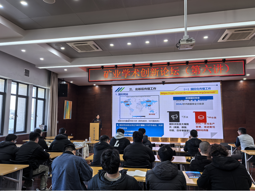 作了题为“科技期刊的选题与投稿——以《煤田地质与勘探》为例”的学术报告。报告会在学院A604会议室举行,由新能源科学与工程系党支部书记严红主持。晋香兰主编从期刊选题策划与成效、投稿、审稿与编校和出版传播工作等方面进行了介绍,并以具体案例详细说明了稿件处理流程和投稿注意事项。报告结束后,晋香兰主编和范章群主任针对参会师生提出的问题,一一进行了详细解答。