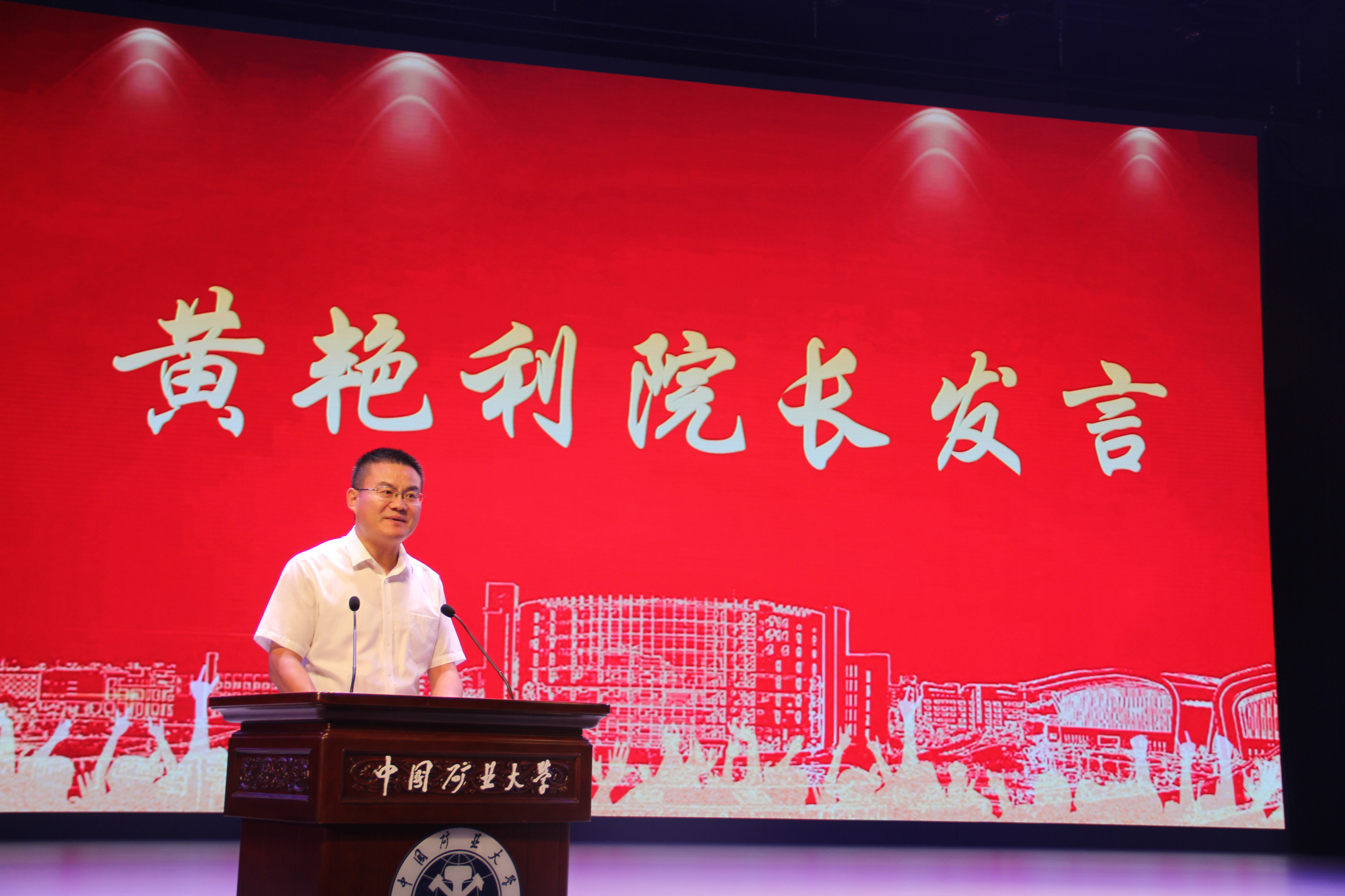 典礼在庄严的国歌声中拉开帷幕。学院院长黄艳利以“立志·立身·立行”为题讲授开学第一课。他勉励新生:一要以“能源报国”立志,担民族复兴之任。 能源是国之命脉,作为能源体系“压舱石” 的煤炭行业更肩负着高质量发展的时代重任。希望新生传承“永远不服输、永远不向困难低头、永远争第一”的“三永远”精神,将 “爱国奋斗” 深植心中,在以中国式现代化推进中华民族伟大复兴的新征程上,完成 “超越自我” 的成长蜕变。二要以“五育融通”立身,奠全面发展之基。 学院有顶尖的学科支撑,矿业工程学科作为国家“双一流”建设学科,连续五年蝉联QS世界大学学科排名前20,拥有全国重点实验室等顶尖平台,和以杰青、万人计划领军人才为代表的师资队伍,将为新生成长提供坚实支撑。希望大家主动跳出“舒适区”,既做实验室里的“创新达人”,也当社会实践的“实干家”,在全面发展中成长为栋梁之才。三要以“知行互促”立行,炼解决难题之能。当前深部开采、智能装备、绿色低碳等领域仍有诸多“卡脖子”难题亟待突破,学院已在全国14个煤炭基地建立实践基地。希望新生以“自找苦吃”的精神,将论文写在祖国的矿山上,用真才实学为煤炭行业绿色智能转型贡献力量,成长为能源强国的建设者和接班人。