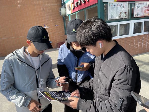 心青年志愿者协会活动实践部成员协助电气与动力工程学院青年志愿者协会开展荧光贴活动。