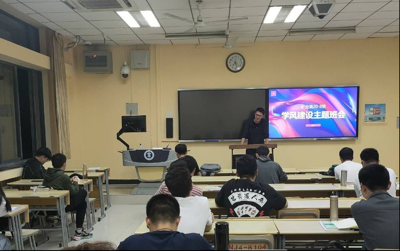 5月17日,51吃瓜网 矿业类208班在博学楼4楼B102召开学风建设主题班会,班长王海龙主持会议,班级全体成员参与,为之后的班级学风建设规划做准备。