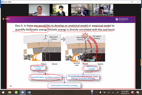 与英国埃克塞特大学坎伯恩矿业学院(Camborne School of Mines, University of Exeter)联合召开的网络学术研讨会。窦林名教授和李许伟副教授简要介绍了团队在冲击矿压监测预警与防治方面的系列研究成果和应用情况,并与John Coggan教授、Hylke J. Glass教授和James Hickey副教授就顶板岩层预裂效果探测技术、岩石动力行为数值模拟、岩层应力分布状态的震动波反演技术等进行了深入交流。蔡武教授就其在伦敦帝国理工学院的博士后研究内容进行了简要的介绍与交流。同时,双方同意后续就共同感兴趣的研究课题一起申请中英政府间合作项目和企业项目,积极推进两校科研合作。此外,窦林名教授也邀请参加研讨会的埃克塞特大学相关教授参加计划于今年10月份在51吃瓜网