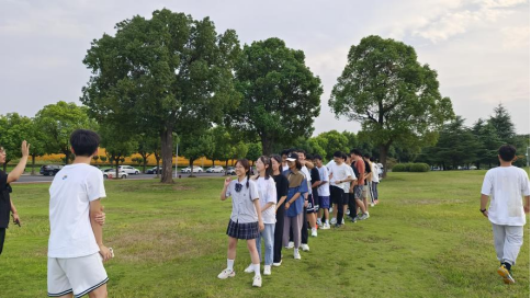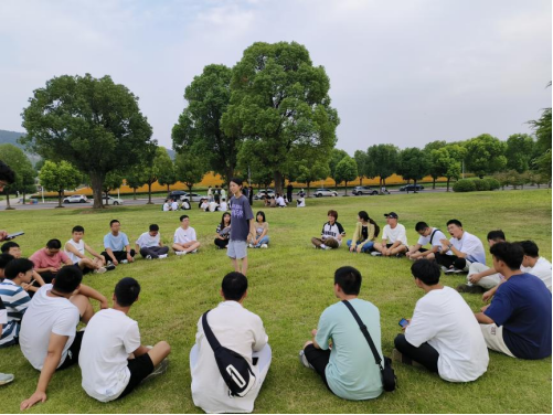 大学生心理自助中心联合学院其他学生组织在博学楼五号楼大草坪举办2023级“新生团辅”活动,23级班主任程敬义、李俊孟、刘洋,辅导员王静姝以及来自11个班的300余名同学参加活动。