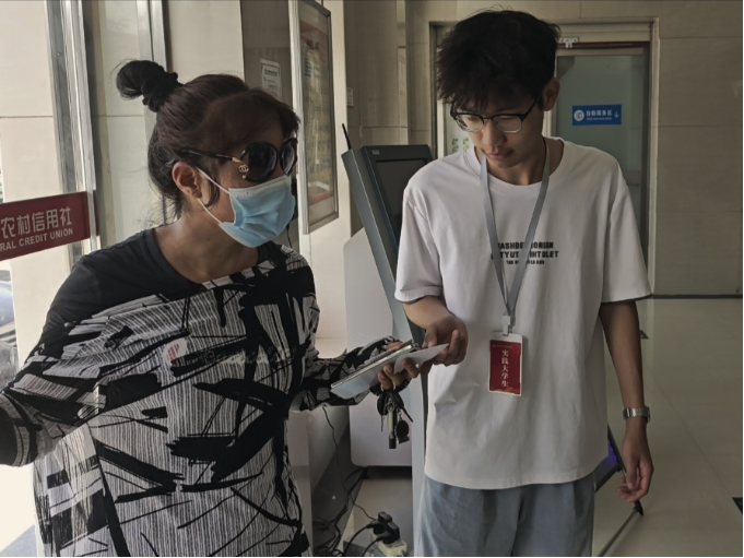 实践团成员在活动中深入学习了各种金融知识,包括银行利率、乡村振兴贷款等内容。了解到乡镇中许多办理银行业务的主要是中老年人,他们在使用自助取款机、识别存单信息和签字等方面常遇到困难。为了帮助这些行动不便的老人,实践团成员们主动上前搀扶他们进出银行,协助识别存单信息,引导签字,收取手机验证码,并帮助操作自助取款机。此外,实践团还协助银行完成了银行卡绑定、填写贷款信息文件、整理业务相关的Excel表格等工作。这些努力不仅提高了柜员的工作效率,也为客户提供了更加贴心的服务,进一步推动了乡村金融服务的普及。