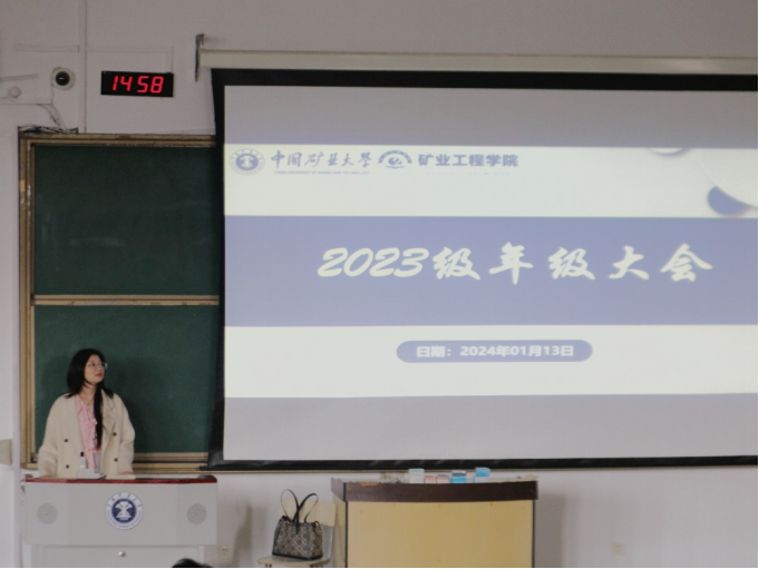 2023级年级大会在博2C202召开。会议由2023级辅导员王静姝主持,全体2023级本科生参加此次会议。