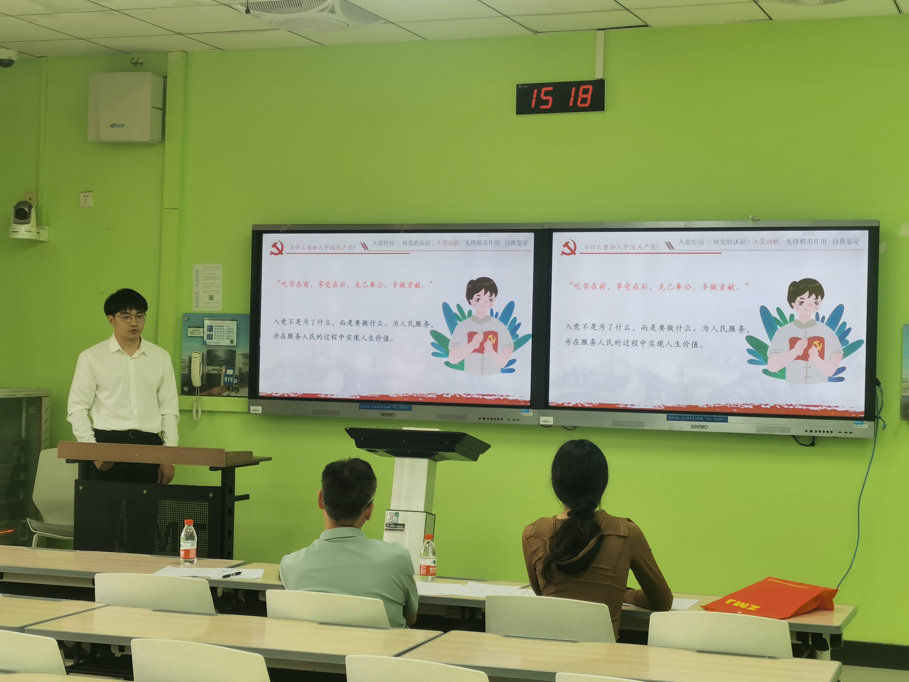 冯平安、杨修德、李海山三位老师认真记录同学们的答辩情况,并对其后续努力方向提出建议,引导他们进一步端正入党动机,向优秀党员同志看齐,以实际行动彰显青年担当。
